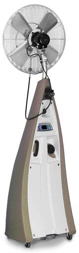 This is a stand-alone, high-pressure, low-noise misting fan for outdoor cooling. Thanks to the built-in pressurization system, MOBI-COOL is capable of mixing atomized water to the airflow, thus producing a cooling effect all around.
